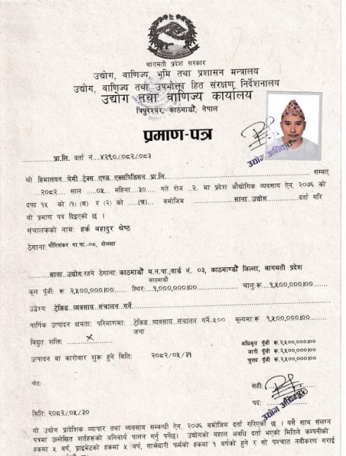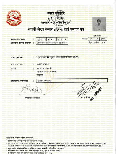 Legal Documents Company Registration Department of cottage and small industry Nepal Rastriya Bank Licence PAN Certificate TAAN Membership Company License